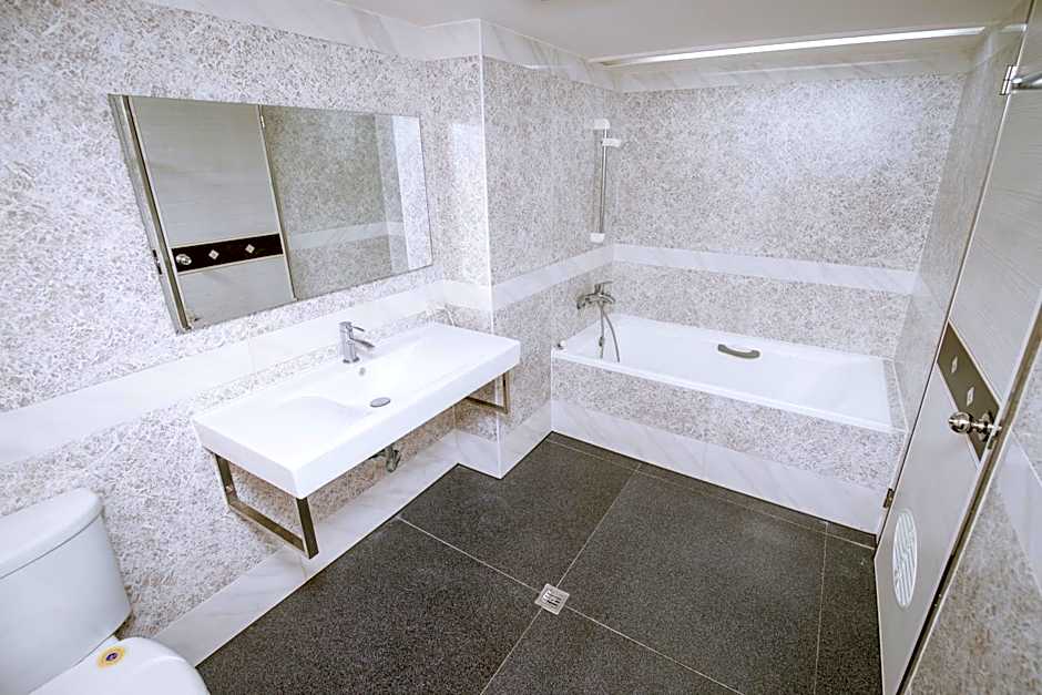 A large, air-conditioned room fitted with 2 double beds, a seating area, a mini-bar and a flat-screen cable TV. The bathroom is equipped with a bathtub.